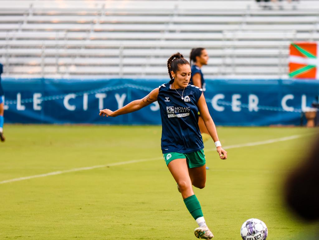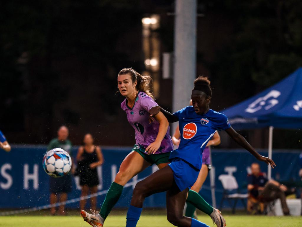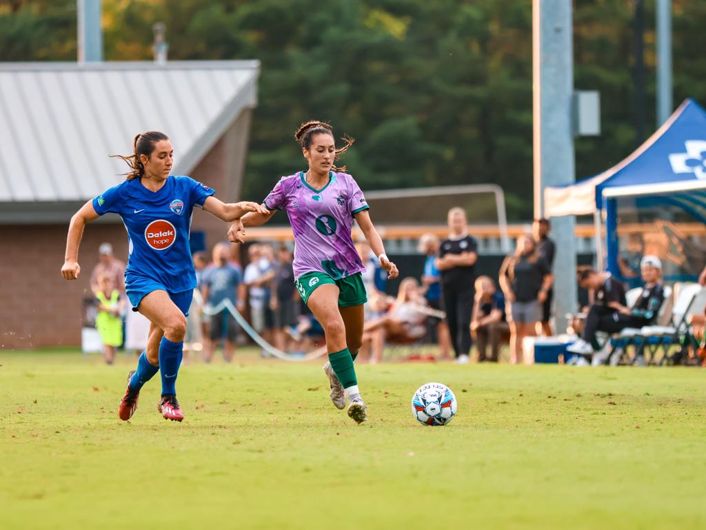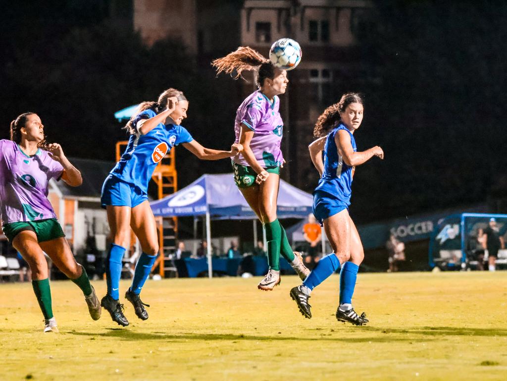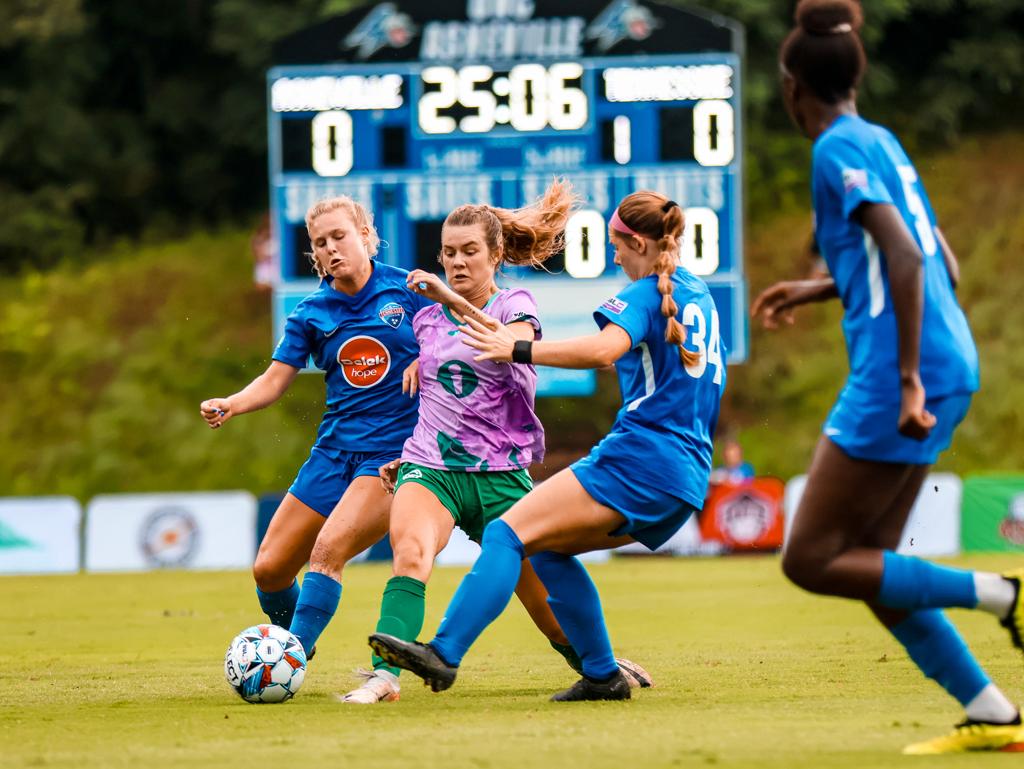 The first half of Sunday’s match was evenly contested, with both sides pressing and forcing giveaways throughout the pitch, preventing either team from producing any noteworthy chances. Although Asheville failed to register a shot on target, Maison Wells and Molly Dywer proved to be threats on the wings, sending in dangerous crosses towards the back post, but to no avail.