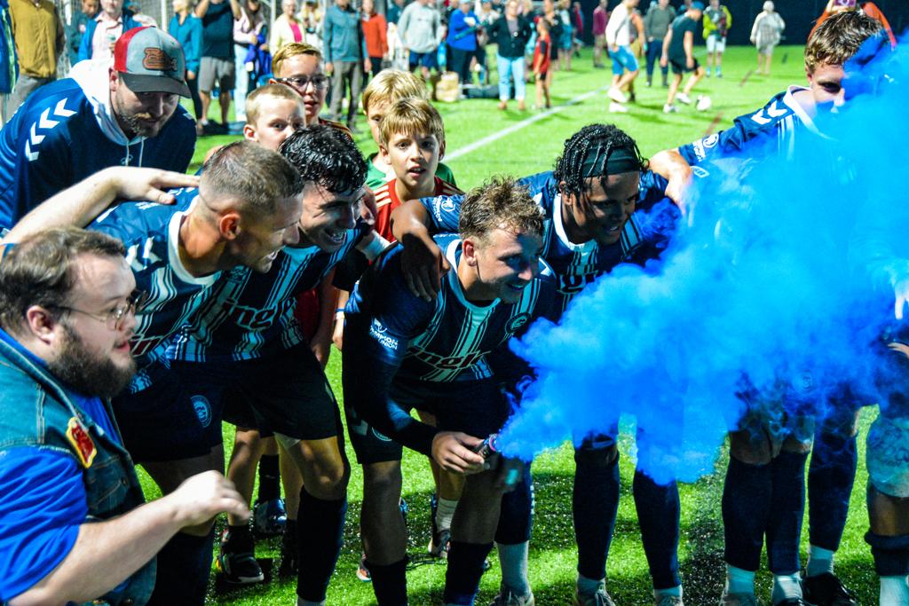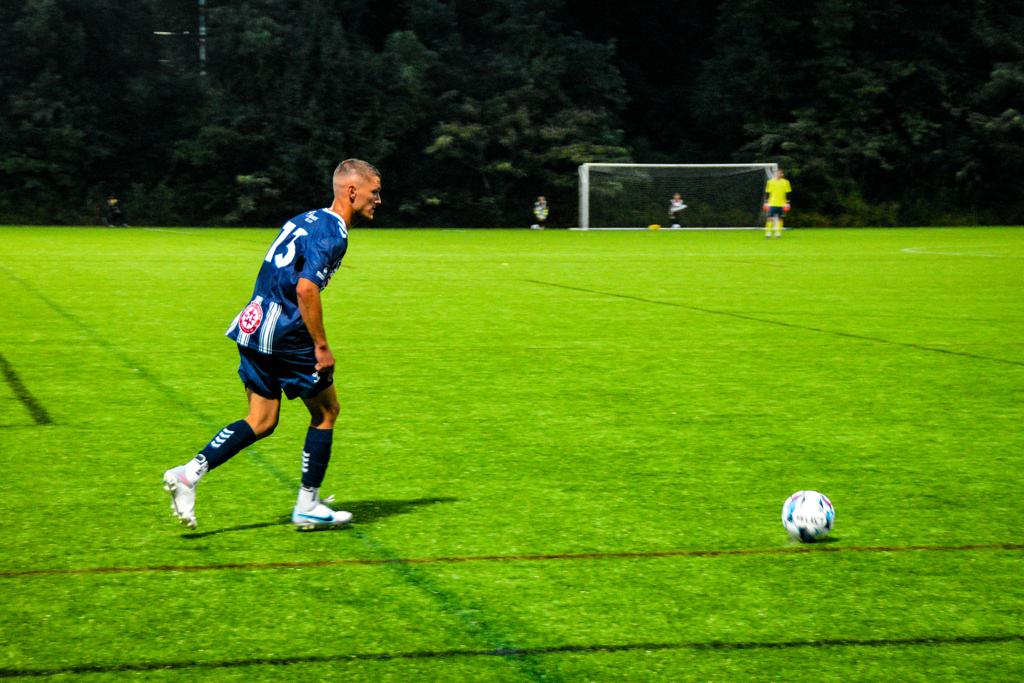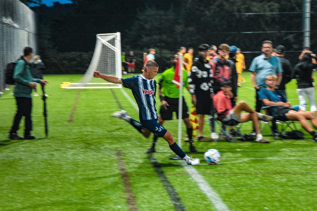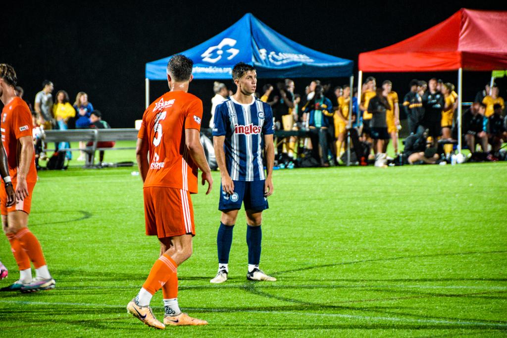 As the light rain drizzled onto the pitch amidst the bright lights, the match finally kicked off after some initial uncertainty regarding the forecast. Within just two minutes of action, the Blues captured an early 1-0 lead thanks to an outstanding first-time finish by captain Simon Carlson. Following a poor clearance by Nona’s backline, Carlson, without hesitation, unleashed an absolute screamer on the half volley, nearly ripping through the side netting of the goal.