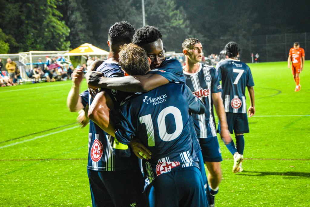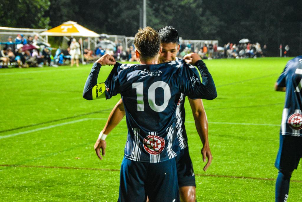 However, Asheville wasn’t done quite yet. Deep into added time, Izaiah Vignali’s unrelenting pressure caused a turnover beyond the penalty area. Taking a touch forward, Vignali launched a blistering strike past Wright for the goal. The match would end just seconds later, with the men of Asheville claiming the victory and extending their undefeated streak to 13 matches.