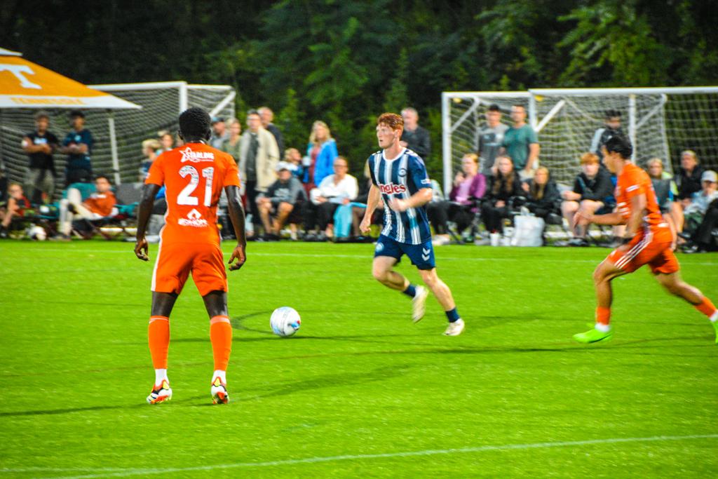 A majority of Asheville’s chances came from corners and crosses in the first half, with Sven Rempel being the main threat on the left side. In the 24th minute, he whipped in a beautiful back-post cross to Mao Wong, who’s strong header bounced straight to goalkeeper Shane Wright.