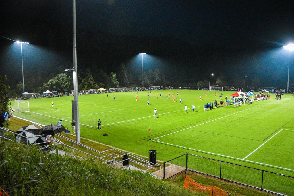Originally scheduled for a 7:30 kickoff at Greenwood Field, the match was unfortunately delayed multiple times due to inclement weather, forcing both sets of matches to be relocated to Buncombe County Sports Park. Despite this setback, the Asheville faithful were in full force, supporting the Blues in the rainy conditions even without stands.