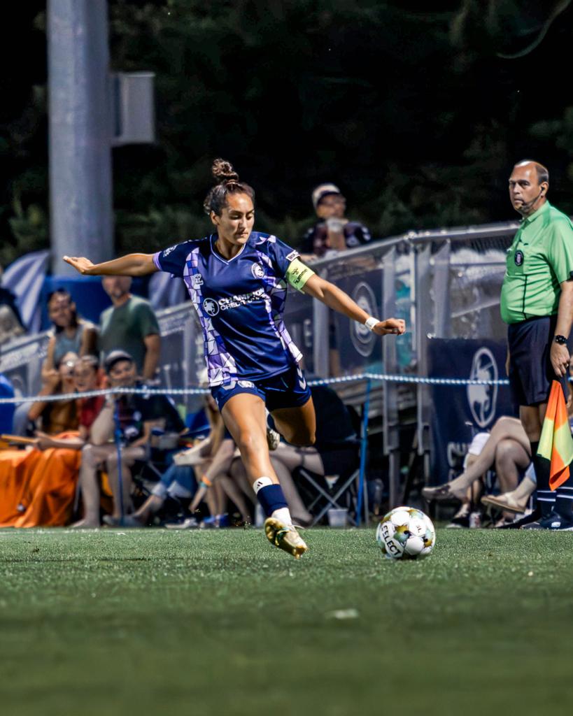 Asheville got things started in the 13th minute with an incredible set piece routine that found the back of the net. Yuliia Khyrstiuk passed the cornerkick on the ground along the endline to Lucia Flores who rerouted the ball out of the goalbox to Juli Viera on the right flank. Viera collected it and whipped a cross to Gry Boe Thrysoe on the left side of the box. Thrysoe headed it back across the mouth of goal where it found a charging Caitlin Conroy who headed it in at the far post to give the Blues an early 1-0 lead.