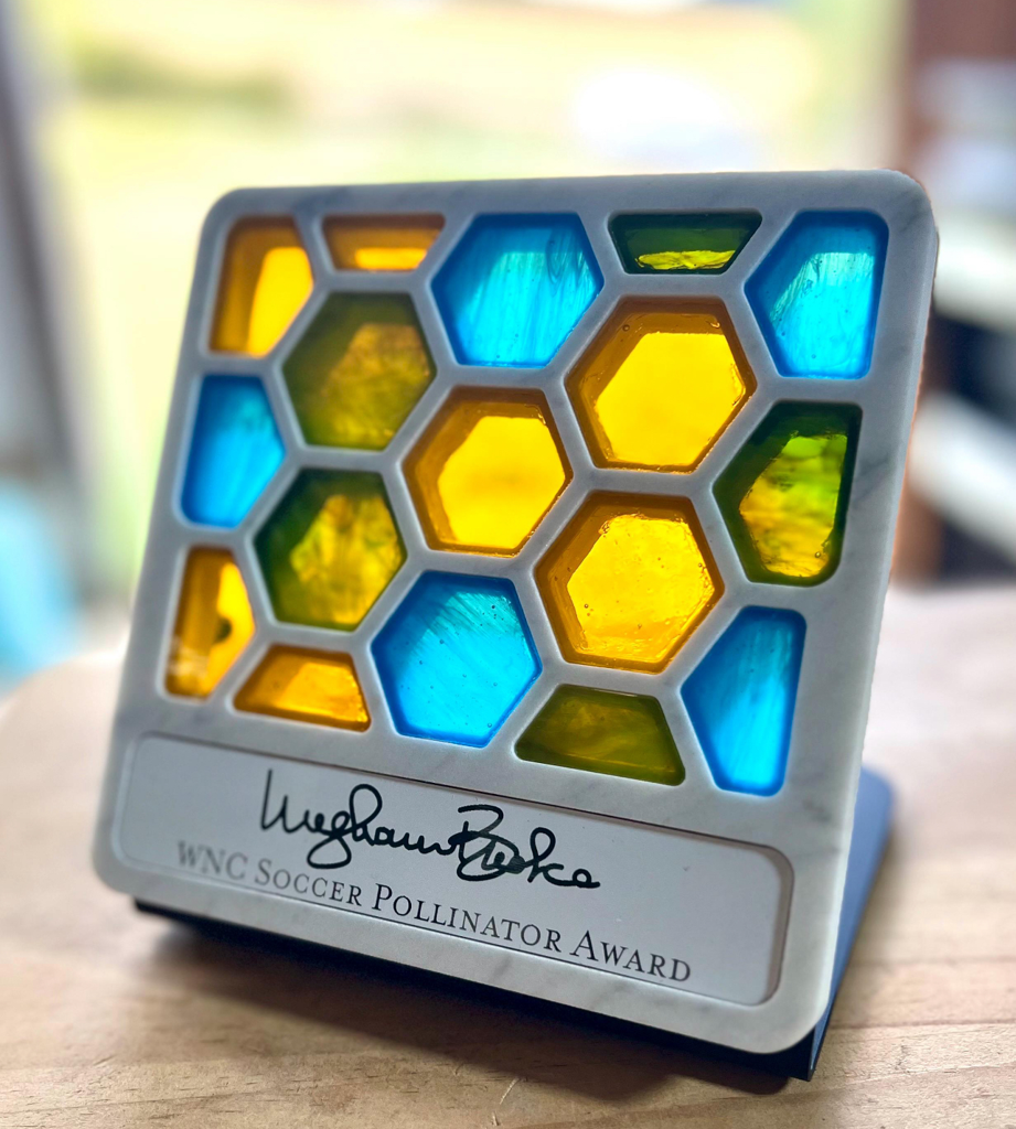 Asheville City Soccer Club is proud to announce Madhu Schmid, a member of the ABASA (Asheville Buncombe Adult Soccer Association) Board of Directors, as the second-ever recipient of the Meghann Burke WNC Soccer Pollinator Award. This award is named after Meghann Burke, co-owner of Asheville City SC and current Executive Director of the NWSL Players Association, and honors women in our community who exemplify the values of Western North Carolina while utilizing soccer to make a positive and lasting impact on the region.